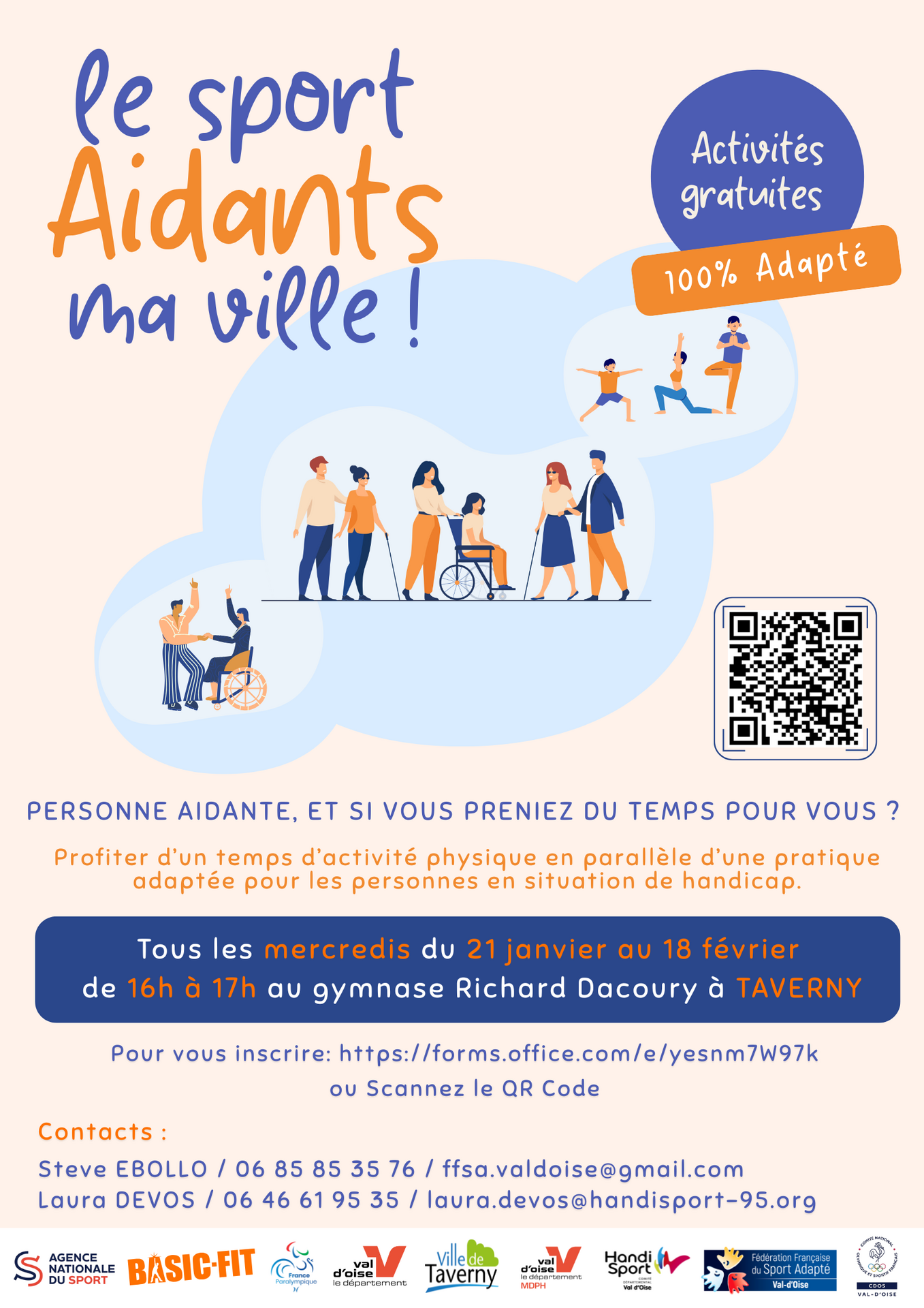 Les places sont limitées pour chaque séance ! Inscrivez-vous gratuitement en ligne dès maintenant via le lien suivant : Centre itinérant Sport Aidants ma ville